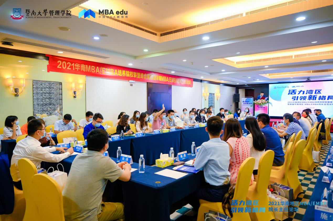 本次活动以“促进MBA/EMBA高质量发展,培养双循环下的湾区管理人才”为主题,紧紧围绕华南地区MBA人才培养、招生改革、MBA培养新模式、品牌建设与探索、师资队伍建设与优化、案例研究与创新等话题进行交流分享。