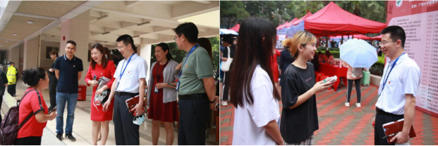 王学通副院长、黄琼宇副院长、党委陈媛副书记、李炎焜副书记、系主任及专业教师代表、各级辅导员老师莅临招聘会现场指导,与企业工作人员和同学们进行交流沟通。李增祥书记表示,希望17级同学们可以找到合适的岗位就业,心理上不要有太大压力,学校和老师们会全力支持同学们的就业工作!