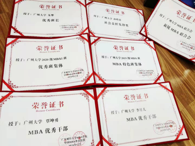 2019级李月儿,2020级覃坤勇获得2020年度MBA优秀干部奖