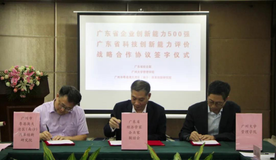 与广东省经济学家和企业家联谊会、广州市粤港澳大湾区(南沙)改革创新研究院签署达成“广东省企业创新能力500强及广东省科技创新能力评价”战略合作协议。
