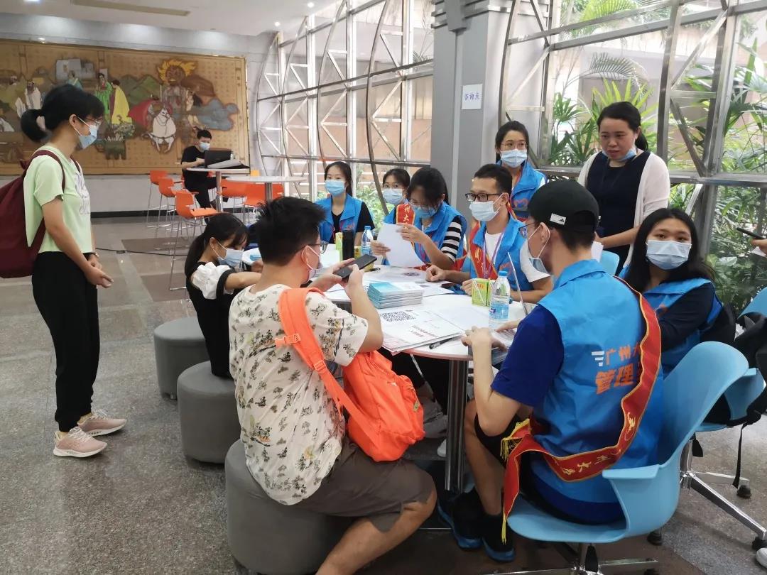 室内里是亲爱的导生导助和团学工作人员负责报到工作