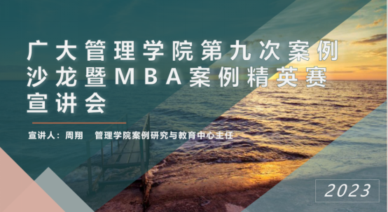 举办了第九期案例沙龙暨第二届MBA案例精英赛宣讲会。会上,MBA案例中心主任周翔向本校的MBA学生分享了参与案例精英赛的意义、案例教学的作用和MBA学生开展案例分析的基本方法及要点。本次宣讲会既是为后续的成人短视频