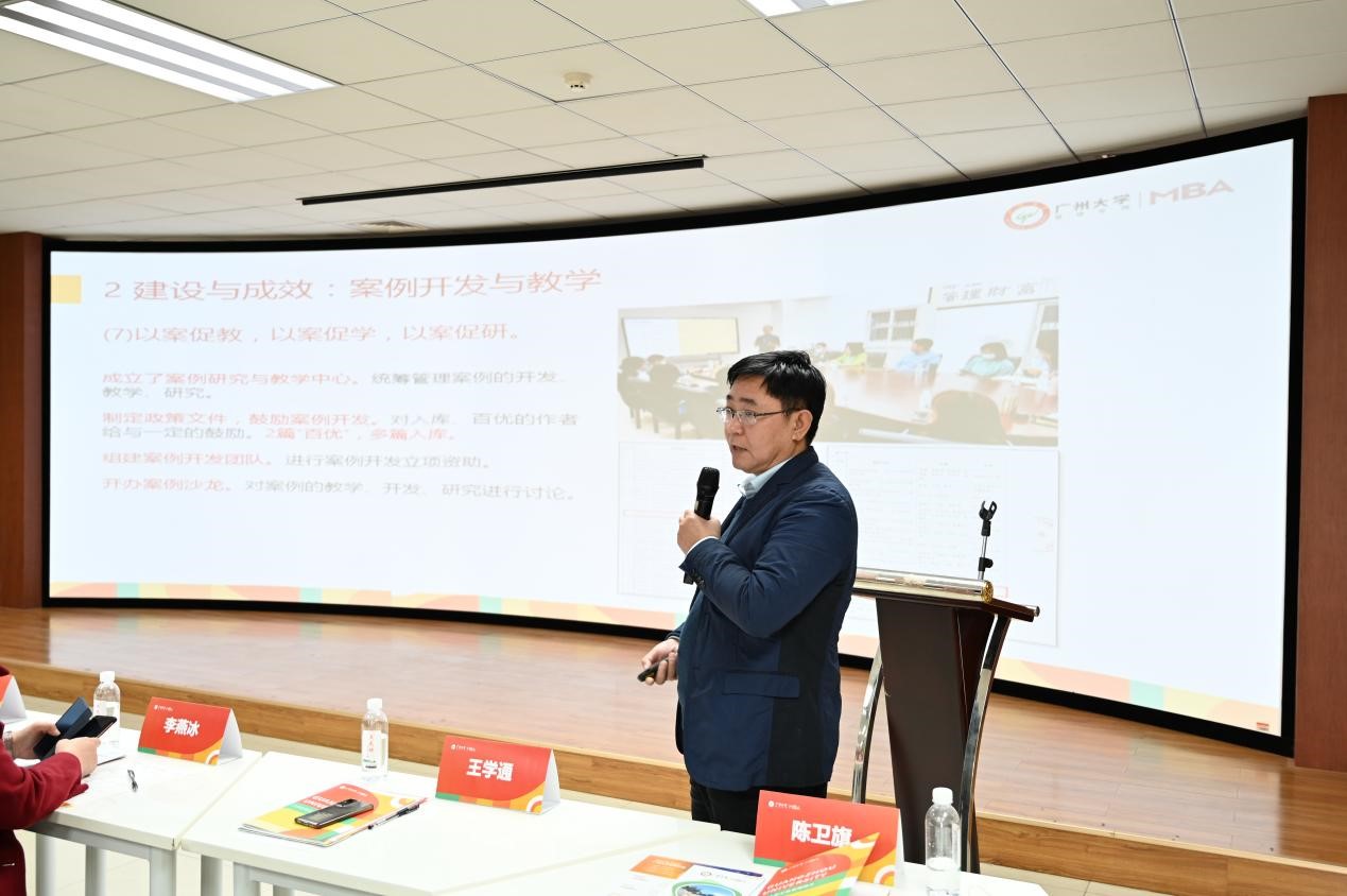 案例研究与教学中心主任周翔博士汇报了案例开发与应用的情况;教师代表张军成副教授分享了MBA课程教学经验。