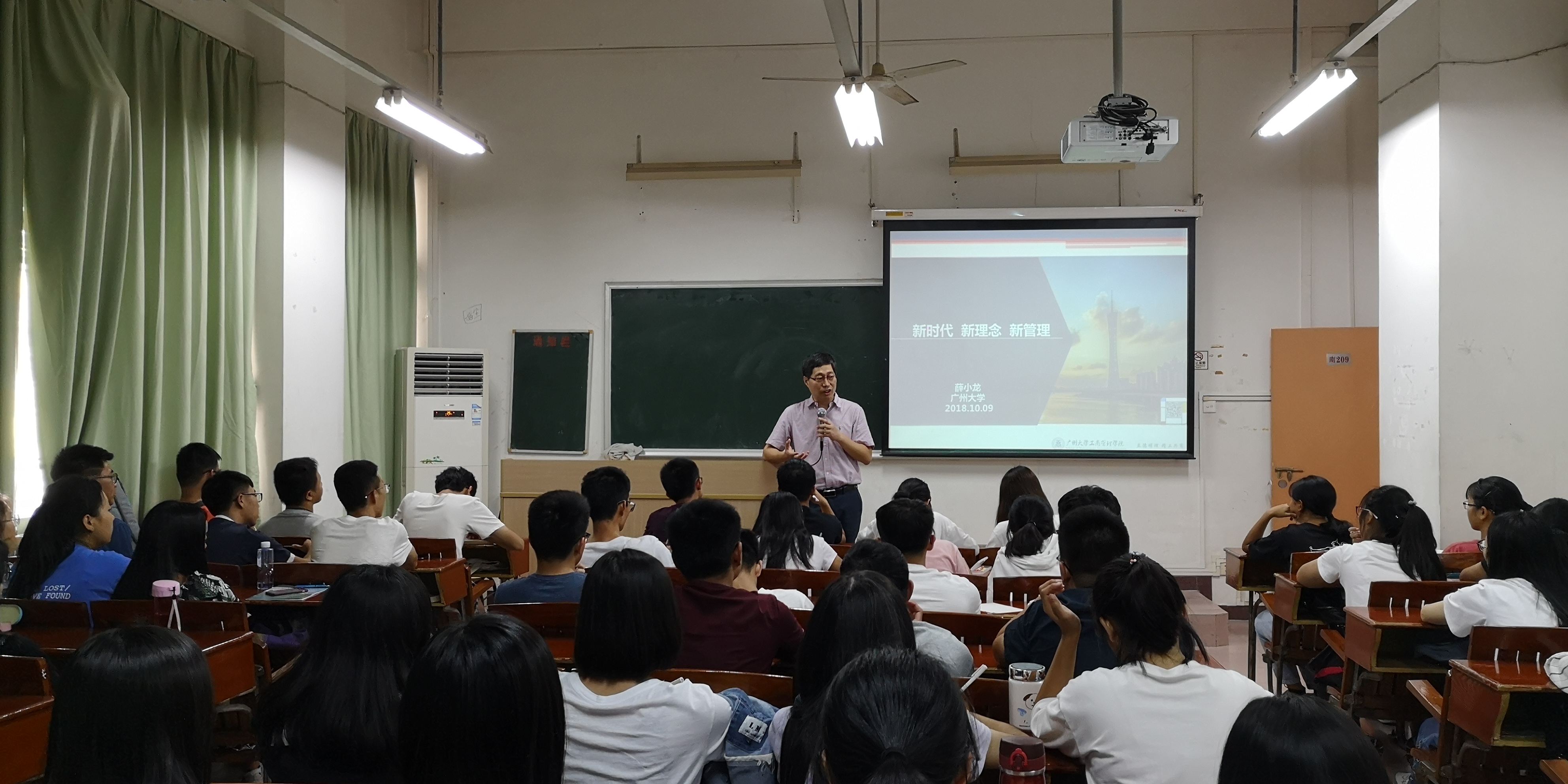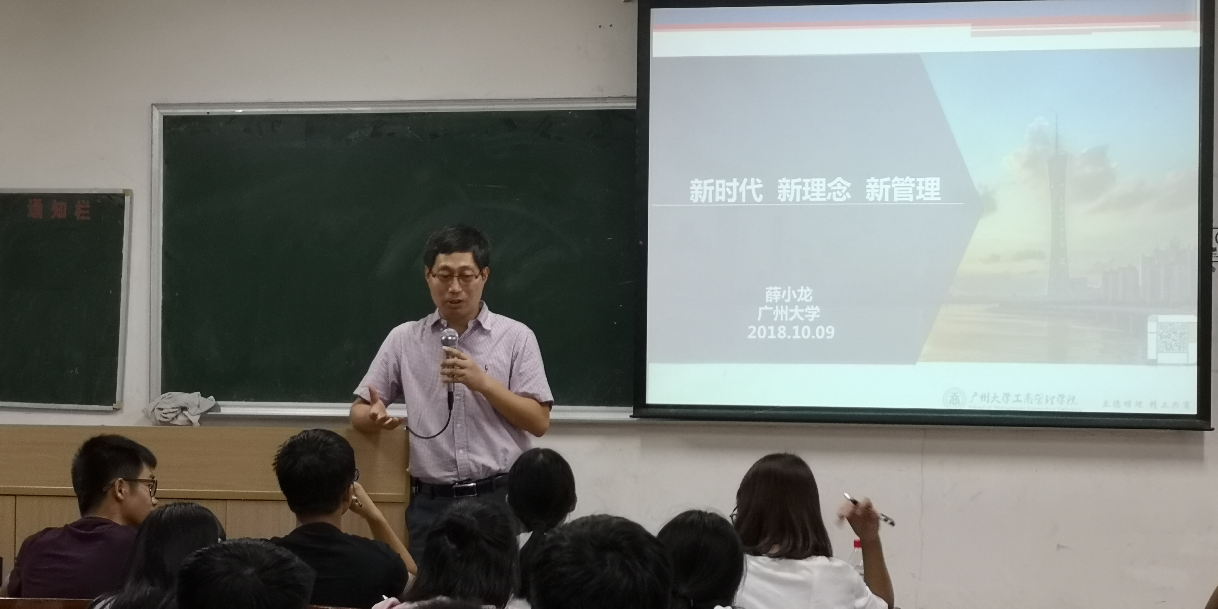 院长薛小龙教授为2018级物流专业同学主讲了思政第一课。薛院长以“新时代·新理念·新管理”为主题,讲解了新时代下国家的发展变化,阐释了发展新理念,结合成人短视频