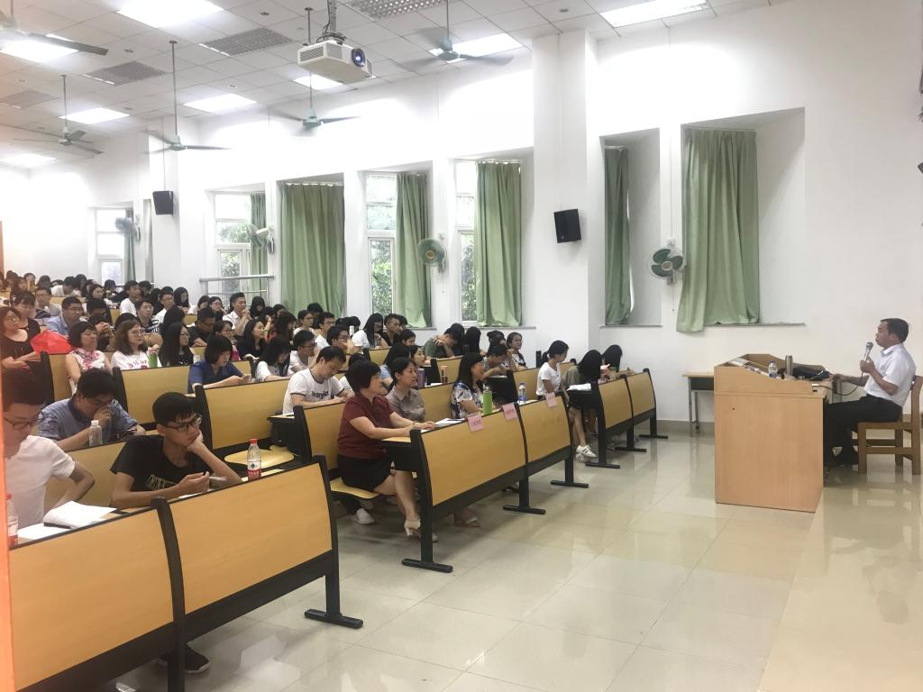 张丰清教授从文化软实力同社会主义核心价值观的背景和意义谈起,用生动诙谐的语言深刻阐释了关于文化的内涵,并从社会主义核心价值观的内容和培育、坚定文化自信等方面的内涵进行了剖析和讲解,并结合他自身的研究,提出了社会主义核心价值观的培育和落地要扎实学习、分别要求、文化依托、制度安排、对接通道,对坚定文化自信提出了不忘本来、吸收外来、面向未来的观点。张教授的党课生动丰富、蕴哲理于诙谐中,使与会的师生党员对中国文化软实力及社会主义核心价值观有了更为深刻的理解。