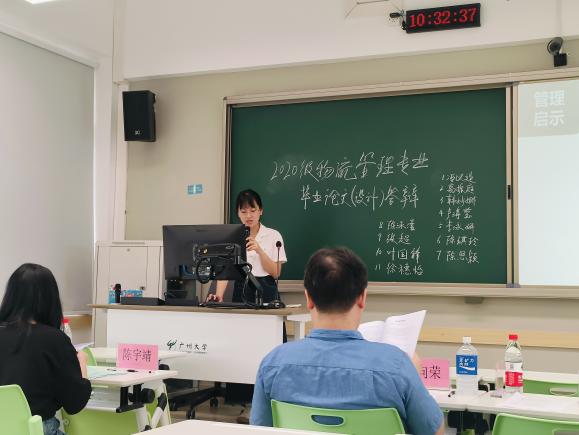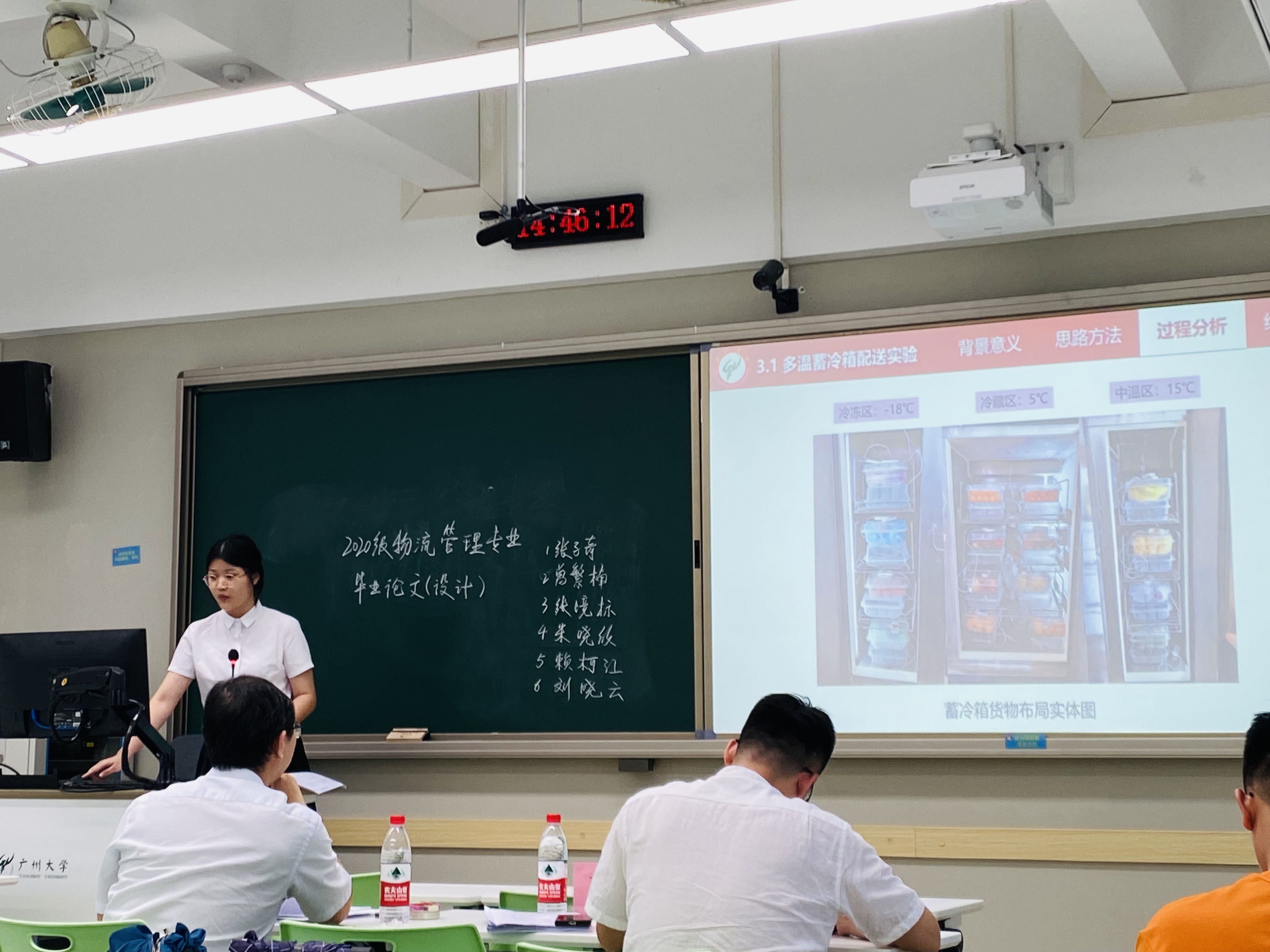 答辩现场气氛庄重而紧张。上午8:30,随着第一位学生步入讲台,答辩正式拉开帷幕。每位参与答辩的学生都准备充分,他们自信地展示研究成果,并详细回答了老师们提出的各种问题。论文主题涵盖了直播电商、绿色供应链、区块链和冷链物流等多个热门领域,不仅体现了物流专业的前沿趋势,也展示了学生们对未来物流领域的深刻洞察。在答辩过程中,老师们不仅对学生们的论文内容进行了细致的审查,还提出了建设性的意见和建议。这种互动不仅检验了学生们的学习成果,也为他们的未来发展提供了宝贵的指导。